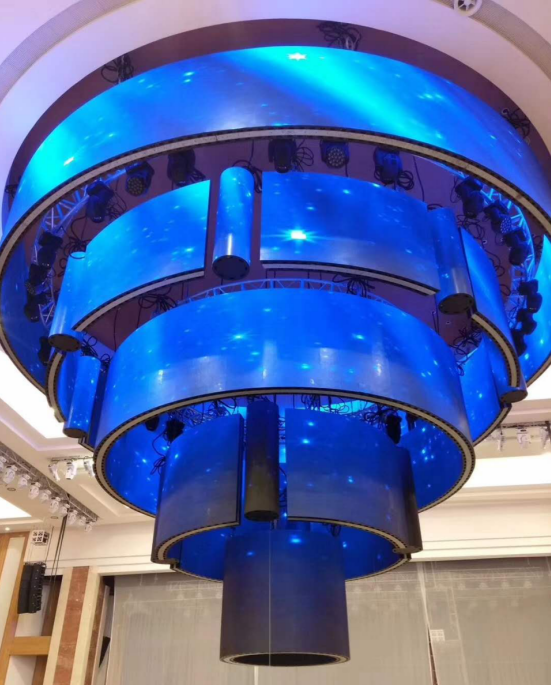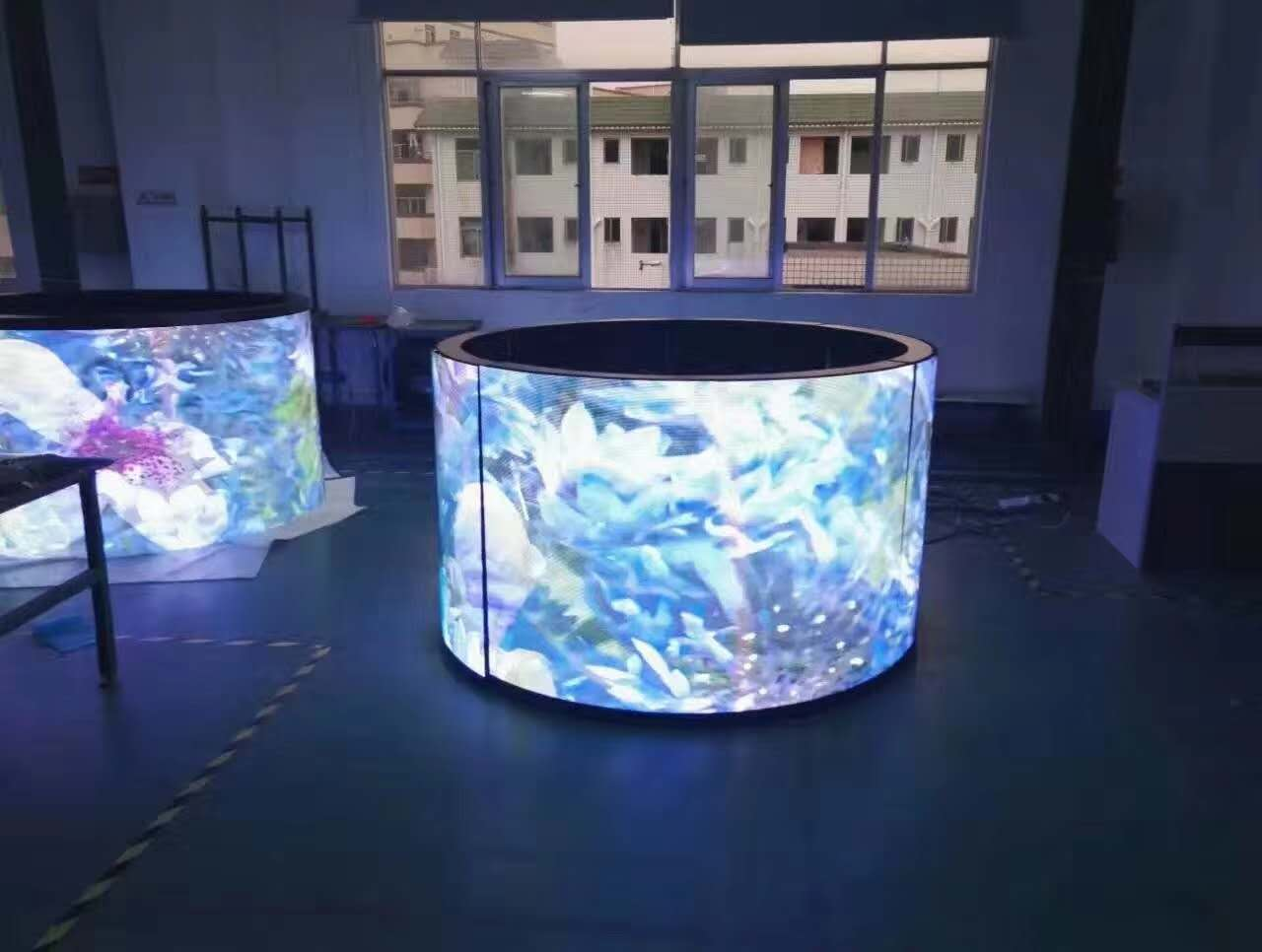 3、P1.875室内全彩高清柔性显示屏特有的柔韧性,可设计拼装成圆柱、曲面、S形等各种复杂的造型。