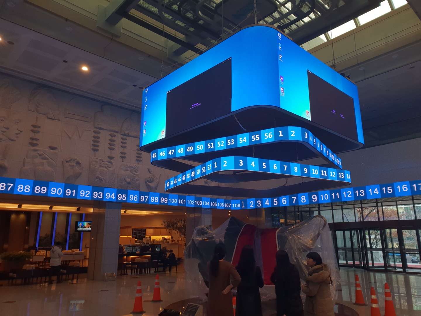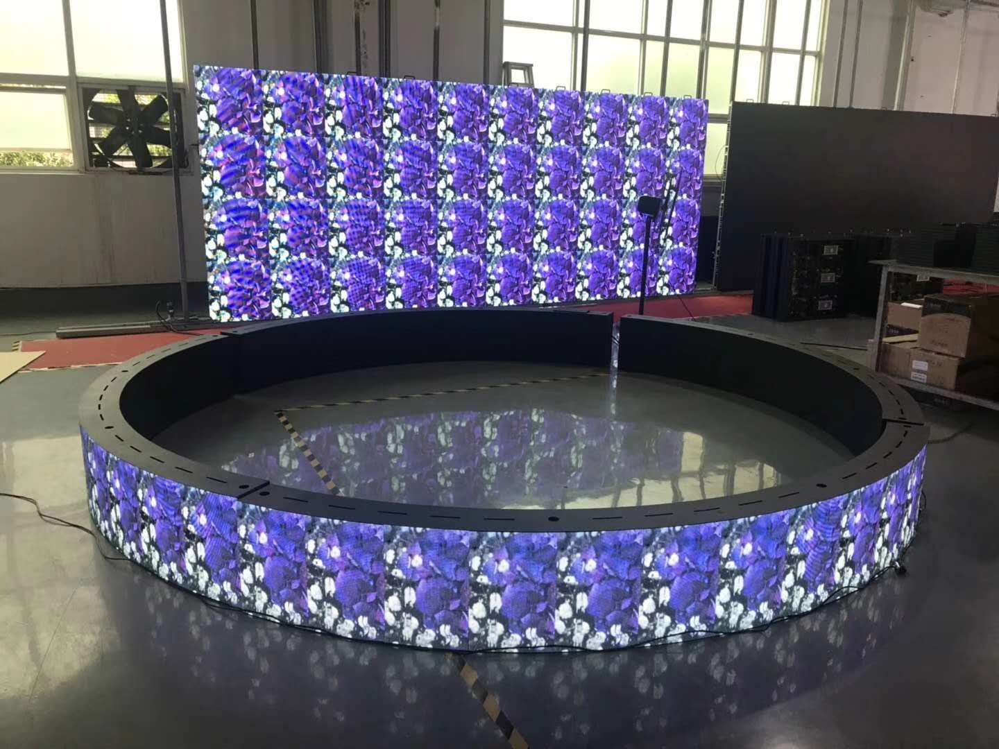 4、室内P3清全彩柔性屏可根据造型把整屏切割成若干个合适的箱体,客户再自行安装,根据分配好的箱体进行安装的屏体流畅性更好。