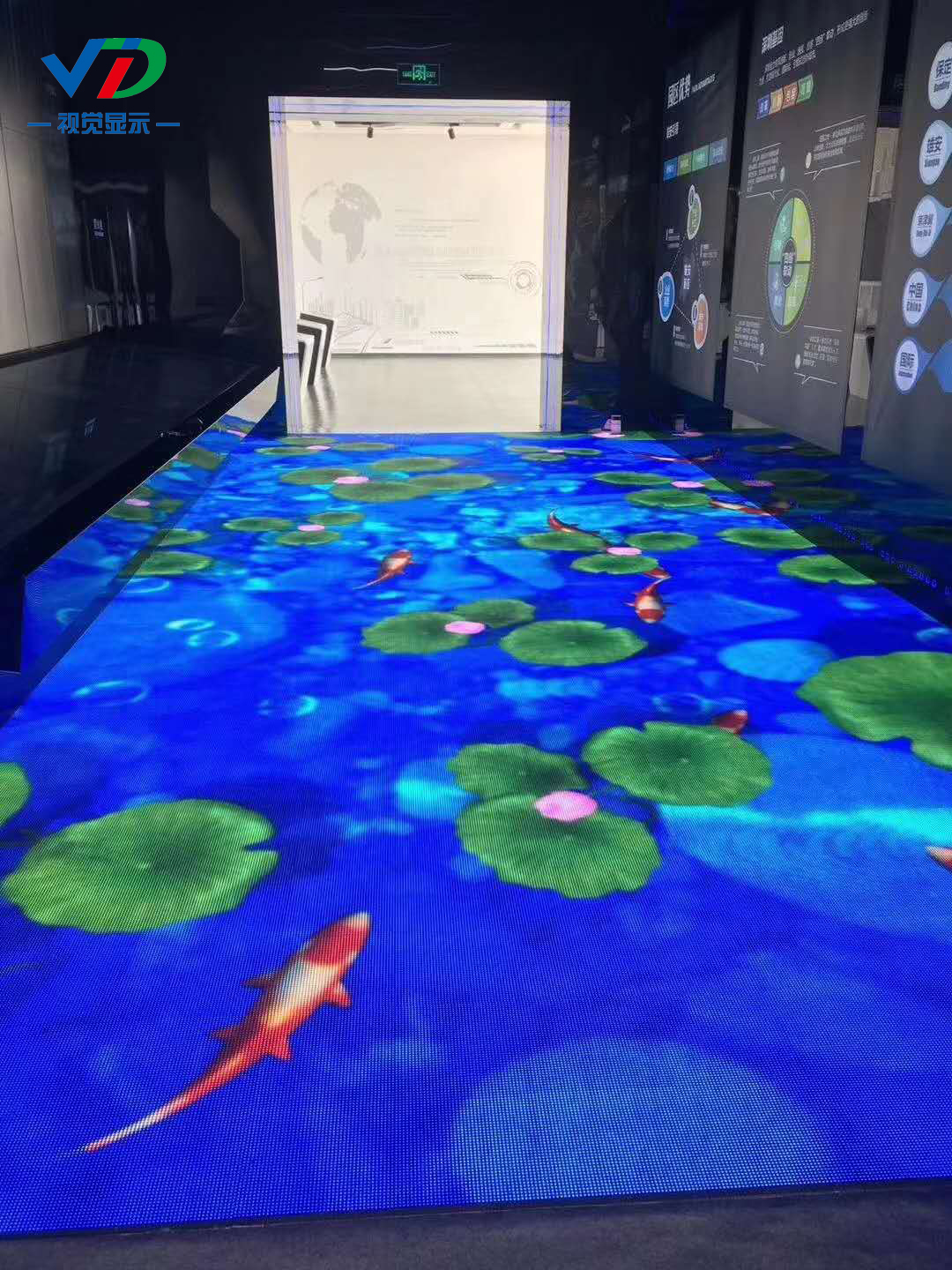 1、P6.25全彩高清LED地砖互动屏是一款新颖的高清数字化地面显示设备,人屏互动的虚拟造景广泛运用于各行各业;