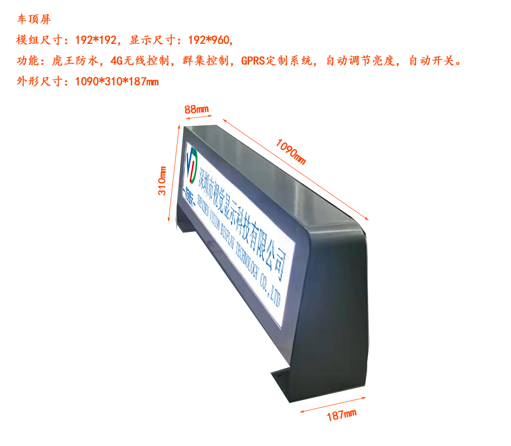 视觉显示LED出租车显示屏/的士屏特性