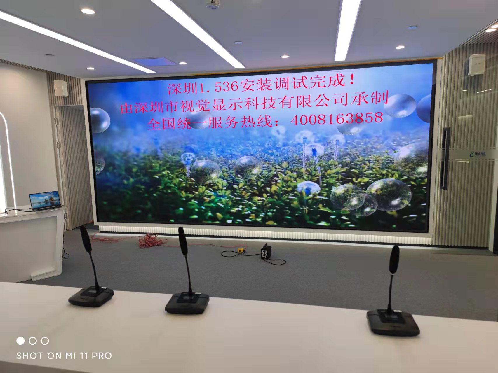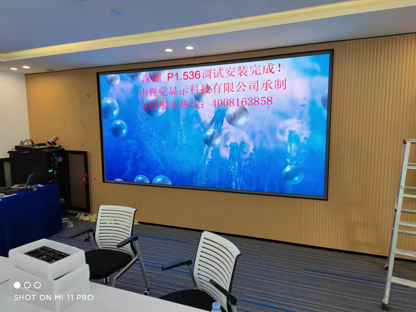 我司承建的深圳某上市公司p1.53屏体验收效果如下,两块屏体大小分别是:12m2,9m2,标准的16:9比例。屏1屏2项目介绍:深圳市视觉显示针对客户要求,针对LED显示屏及会议系统做出整体方案设计。屏体1作为展厅使用,主要对产品的细节展示要到位,与会人员观看距离要合适,所以用p1.53作为最终的解决方案。屏体2用途为会议系统,作为互联网会议载体,有高清信号源接入及转播,并且屏接入远程会议系统的同